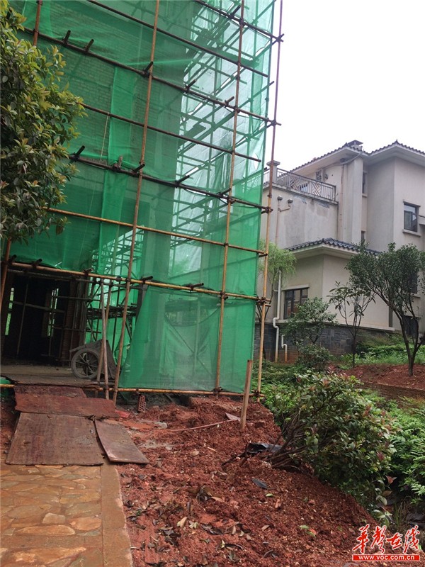 “接到举报后我们经多次出面,并且责令该业主停工。”望城区城管局执法大队的一位负责人告诉记者,城管局执法大队对该别墅进行了勘测,该房子西侧建设一个占地约38平米的车库,南侧建设一间占地面积44平米的房屋,未取得规划许可证。