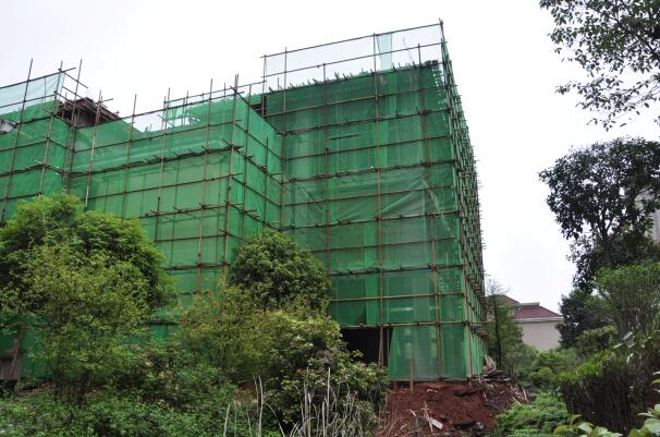 该别墅业主将阳台向外进行了扩建,并准备修三层高。