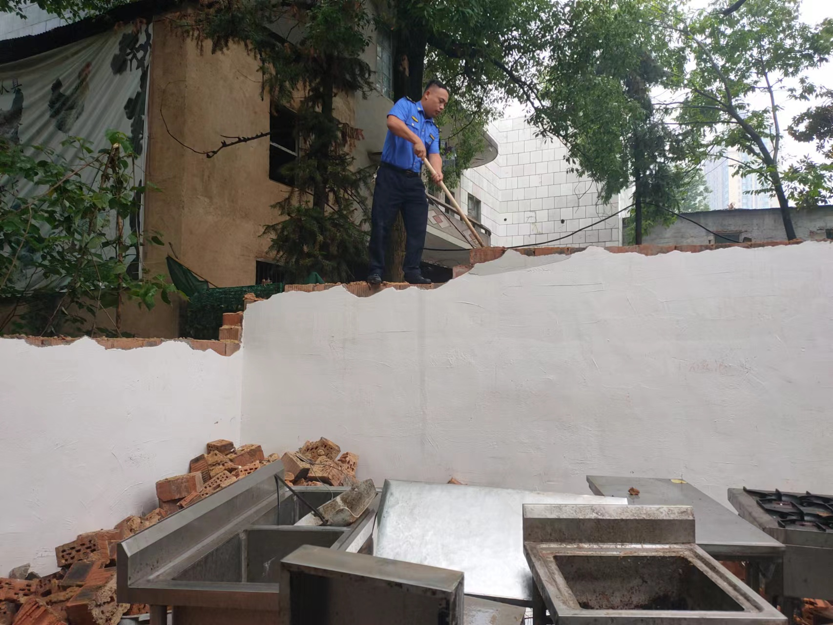 您好!收到您的信息后,我局高度重视,2022年5月6日我局同栗雨街道办事处进行了现场调查,该处系对原有建筑进行翻修,对于房屋后方加建部分,栗雨街道办事处于5月8日进行了拆除(附现场图片)。我局也会密切关注事态进展,并督促栗雨街道办事处妥善处理此事,确保切实消除安全隐患。