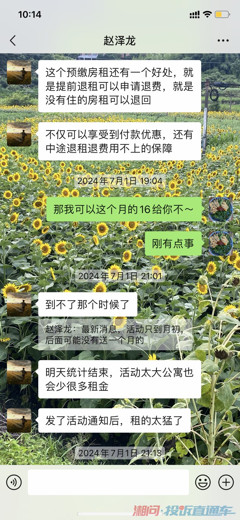 2024年,4月19日长沙轮廓公寓中介赵泽龙以公司股东的身份和房源降价租赁的信息诱骗本人在中南汽配城签订了一年的租房合同,没有出示公司营业执照和房东书面委托书,合同中没有标注从业人员的身份信息和联系方式以及从业编号,只有公司的公章,合同经办人为赵泽龙~并出示了公司收款专用码(因为之前在芙蓉区西龙苑短租了一个月,房租也是转给赵泽龙,点进公司公众号),导致我一直以为赵泽龙是公司股东之一。期间,赵泽龙以预交房租可以优惠的基础上享受减免,还可以随时退房退租退钱,还带开收据的,诱骗本人预交了一年零三个月的房租,每个月以拆分房租的形式支付,发一些...