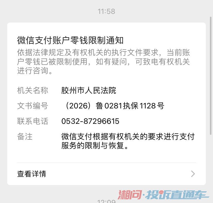 投诉胶州市人民法院限制微信支付,未收到裁定书!