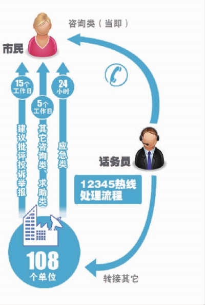 张琳表示,市民拨打12345市民服务热线电话,将统一由人工接听受理前台话务员接听。对咨询类的问题,前台话务员能依据信息库标准答案答复的,将当场答复;对不能当场答复的诉求事项,前台话务员将按规定流程进行分类处理,再由市政府热线管理部门转至相关成员单位在规定的时限内负责办理、答复。市民在来电反映诉求时,要清晰陈述,留下有效联系方式,以方便及时办理回复和回访。