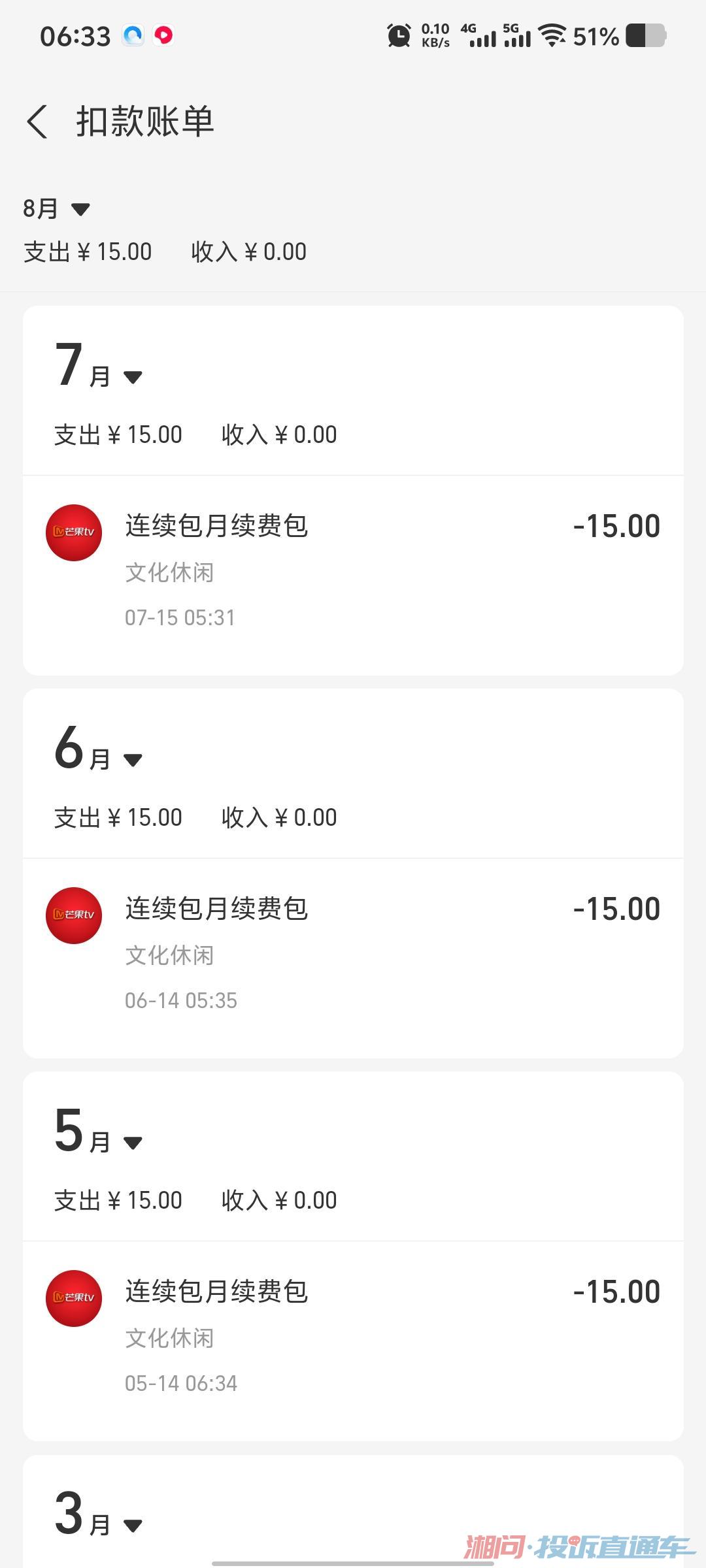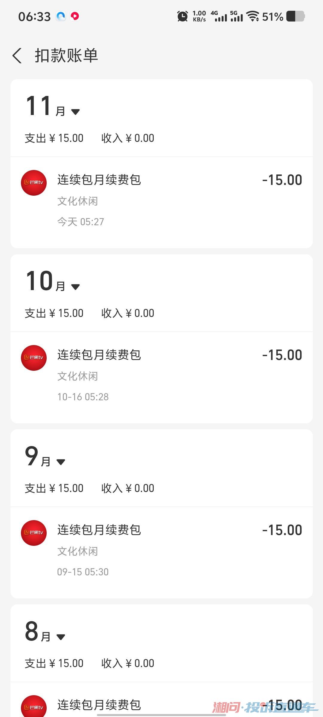 1.今天发现银行卡有一笔未知扣款,前去查询,看到扣费渠道是支付宝。2.查询后,发现是湖南快乐阳光互动娱乐传媒有限公司扣费。3公司从其银行卡中无故扣款,金额每月15元,时间长达一年多,且这些扣款并未经过我本人的授权。侵害消费者权益,要求原路退款,且不再扣款。