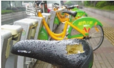 事实上,株洲公共自行车系统在运行中频繁出现不文明现象。曾有市民在网上发帖称,多次看到有人将公共自行车抛弃在山上、湖中,甚至在周边城市。在株洲街头,记者随意找了几个租赁站点,均发现有爆胎与零部件被损坏的自行车。