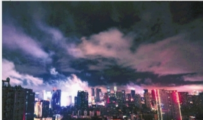 5月8日晚11时,星城上空骤雨初歇,云团在高楼间涌动。 记者 童迪 摄