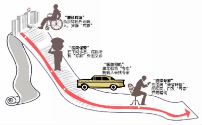 “我们一般是两人一组,假装成来湘雅医院复诊的病人。”医托周绿君说,在排队等候时,她们会物色从外地来长沙求医的病人,并套近乎。“探知她所得的病后,我们会谎称之前自己也是得了这个病,这次是治好了来复查的,并大赞某某教授医术的高明。”