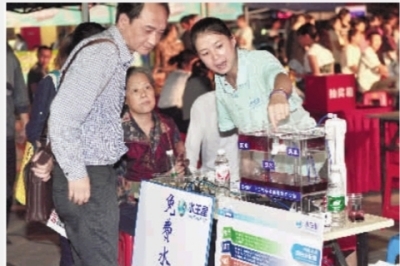 10月12日,长沙市时代广场,水王星工作人员正在给市民做净水试验展示。实习记者 唐俊 摄