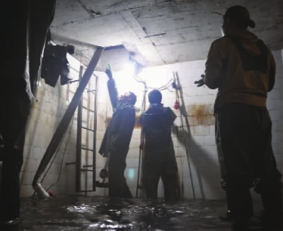 ▲4月20日,本报曾组织志愿者来到长沙市金邮小区,全程观看小区水池清洗过程,池底的污水已没过膝盖。(资料图片)实习记者 李健 摄