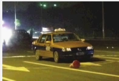 17日凌晨1点,记者来到事发点——青山路与东方红路交会口往西一公里的位置,该路段两侧都是荒山,十分偏僻,民警在现场已拉起了警戒线。一辆棕黄色的出租车顺着车道,停在路中央,车身没有明显撞击的痕迹,挡风玻璃外侧有个血手印。附近人行道上,有大片已凝固的血迹。
