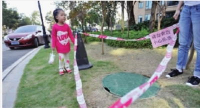 现场工作人员介绍,这口井有3米多深,里面积淀着许多垃圾,沼气味也特别重。不少围观的业主看了后也表示很担心,“街对面有个滑梯,每天都有不少小孩子来这里,要是哪个没注意掉下去可怎么办啊?”