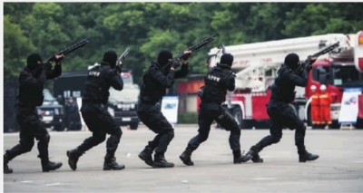 10月28日上午,湖南省公安机关“规范执法警营开放周”活动中,特巡警支队上演枪战术表演。 通讯员 彭滔 摄