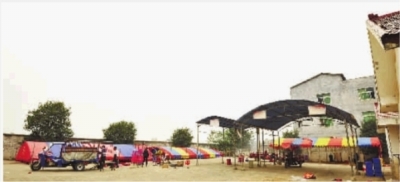 10月28日下午,宁乡县大屯营镇汽车站,这里刚刚举办过一场婚礼,工作人员正在拆除婚礼布置,婚礼是韶光村党总支书记为其儿子举办的。记者 童迪 摄