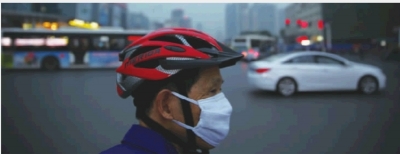 10月29日下午,市民刘先生戴着口罩骑车经过长沙火车站前广场。他坦言,如果不是雾霾重尾气多,他才不愿意戴着口罩。 读者 黄启晴 摄