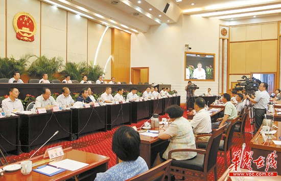 2012年7月25日,省直相关厅、局负责人现场接受询问。当天,省十一届人大常委会第30次会议就湘江流域综合整治情况开展专题询问。(资料照片) 本报记者 刘尚文 摄