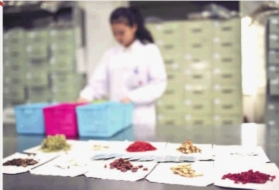 长沙市中医医院的中药师在配制膏方药材。 记者 童迪 摄
