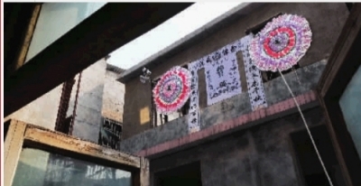 对面挂起“灵堂”放哀乐