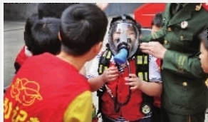 在讲解员的带领下,小读者们参观了各式各样的消防救援车辆模型和消防服、防毒面具等消防器材,10岁的罗嘉飞还试戴了一次防毒面具,“有点闷热,还有点点臭,不过这是我第一次戴防毒面具,高兴!”