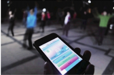 11月8日晚上,长沙市丽星景园小区,记者在现场用分贝仪测试,离广场舞队伍十余米左右,音量平均值在68分贝左右。实习记者 李健 摄