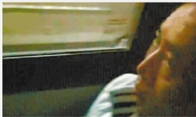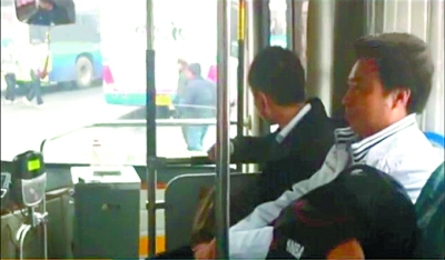省水运管理局党委书记钱俊君乘坐公交上班时的情形。(电视截屏)