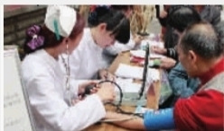 医疗进社区活动中,长海医院现场为社区居民体检,并发放健康档案。记者 张明阳 摄