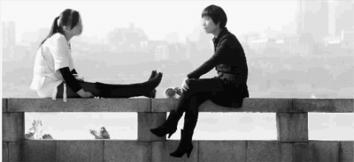 11月17日,长沙市湘江中路,两位市民坐在江边栏杆上聊天晒太阳。 实习生 何佳乐 摄