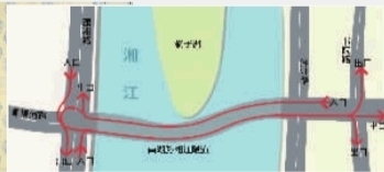 南湖路湘江隧道在西岸不接阜埠河路而接潇湘大道,所以河西车主想进隧道必须上潇湘大道,从河东来的车主也要通过潇湘大道才能转换到其它路上。在东岸,隧道有一个进口和三个出口,唯一的进口在书院路以西的南湖路上,出口中两个在书院路上,一个在书院路以东的南湖路上。