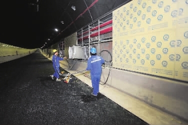▲11月18日下午,长沙市南湖路隧道,施工人员在做最后的电气系统的安装调试。记者 田超 摄