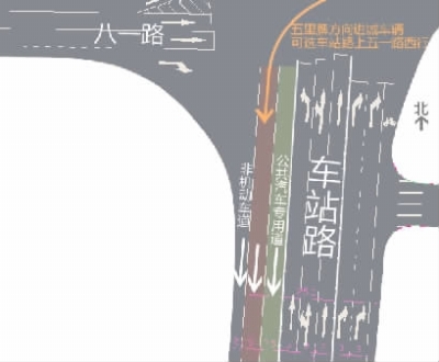 为了破堵,交警部门近期将对五里牌路段实行交通优化:车站路的八一路口至五一路口路段将恢复双向通行,北往南2个机动车车道(其中一条为大客车专用车道),而南往北保留5个机动车车道。五一路火车站路口到曙光路口,东往西车流量并不大。车站路八一路口至五一路口恢复双向通行后,五里牌方向进城的车辆可以选择车站路上五一路西行,有效缓解八一路的交通压力。