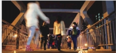 11月27日,长沙市营盘路蔡锷路口,市民走在新建的防滑高架桥上。实习生 何佳乐 摄