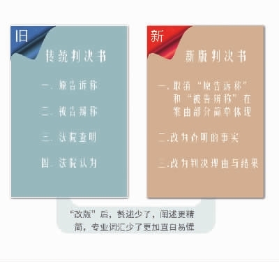 “在传统文书中,一个简单的矛盾经过、案件事实,都会在判决书里重复讲三次,改革后统一只在‘查明的事实’中提一次,阐述精简,也没那么多专业词汇,容易懂了。”本案的主审法院、长沙县民一庭庭长常维表示,按照传统的判决书模式,该案的判决内容会有5页。