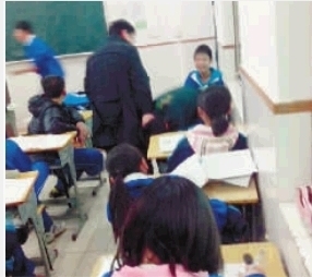 “是昨天发生的事情。”丁先生向记者展示了一组现场照片,其背景显示为学校教室。