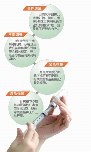 11月下旬和12月上旬,常德、衡阳两市相继报告3名婴儿接种乙肝疫苗后发生疑似预防接种异常反应的事件。