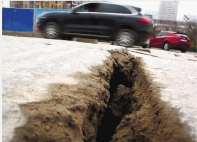 原因:重型车压垮麻石路