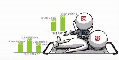 12月,记者蹲守长沙各大医院,随机向医生和患者各发放了百余份问卷,在收回的百份有效问卷中,53%的受访者认为医患关系紧张,68%的人认为医生是高危行业。