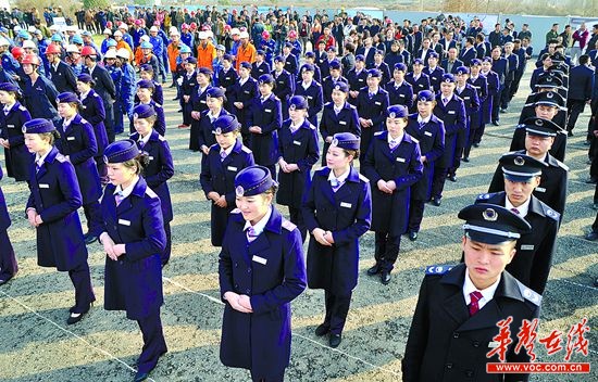 乘务员身穿崭新的制服亮相。 记者 田超 摄