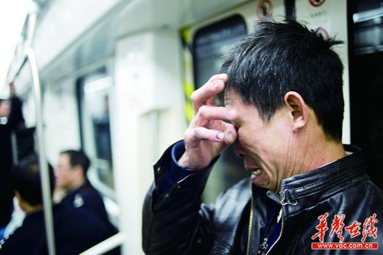12月30日,长沙地铁2号线试运行,一位在站台工作的工人站在开动的地铁里喜极而泣。 记者 李丹 摄