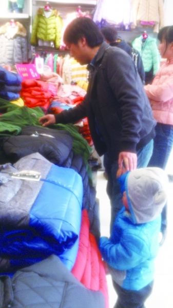 市民正在选购羽绒服。