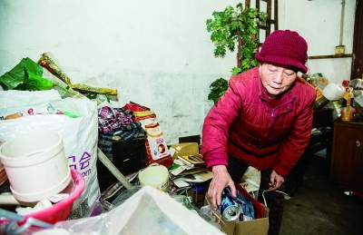 1月14日,长沙市友谊社区湘瓷宿舍,王仙果去世后,其70岁的母亲开始拾荒补贴家用。 记者 张寅宇 摄