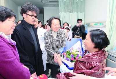 1月16日,省政协副主席王晓琴、知名主持人汪涵等来到湘雅二医院,看望“板凳妈妈”许月华。记者 刘尚文 摄
