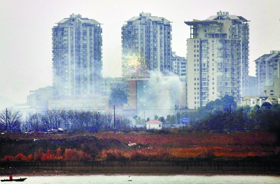 2月7日,长沙市河西潇湘路,正月初八的“开门炮”烟雾弥漫。因“禁炮令”,今年“炮声”稀疏,对PM2.5影响较小。 实习记者 李健 摄