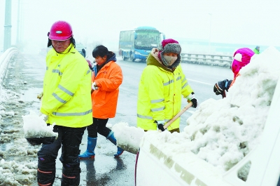 早上7时许,天心区城管大队集结150多名城管队员,出动30多台车辆,携带铁锨、扫把等除雪工具,分别赶赴辖区内的浦沅立交桥、城南西路高架桥、侯家塘立交桥、湘江大道南段立交桥等坡陡路滑的路段开展积雪清理工作。在浦沅立交桥上,城管队员们对堆积在桥面两侧、匝道以及桥面中央双黄线的积雪进行清除,尽管寒风呼啸,大家的热情和干劲不减。截至中午12时,各立交桥面的积雪已基本清除。