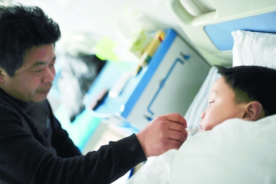 2月12日,长沙163医院病房,斌斌的眼伤还有待观察。记者 童迪 摄