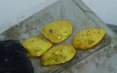 警方在嫌疑人家中找到黄金首饰熔成的金块。