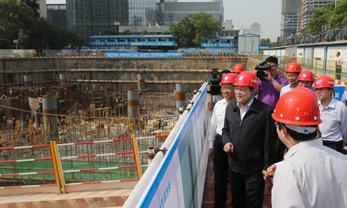 省委副书记、省长杜家毫在湖南日报传媒中心项目建设工地考察。 本报记者 罗新国 郭立亮 摄