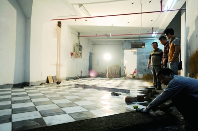 工人们说,工程快完成一半了,再过几天就可以进行装潢了。