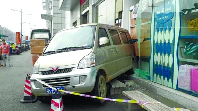 面包车撞上服装店,不想背后有“推手”。 记者 张浩 摄