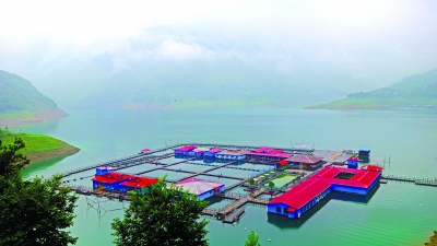 娄水江垭水库,水质清澈,水面建了个无环评报告的水上餐厅企业。