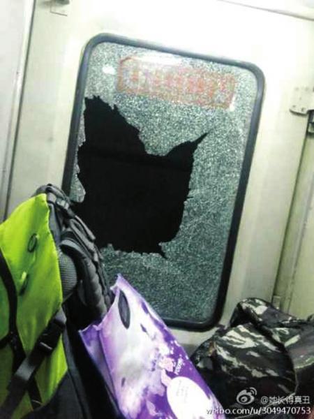 见砰砰的声音。”该网友说,开始以为是铁轨的声音,但后来听着像是石头在砸车,紧接着就看见石头把车窗砸破了,石头没有飞入车内,但有人在车厢里捡到了碎了的铁片。