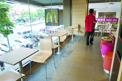 7月23日,长沙市开福区华夏的一家麦当劳店内空着许多座位。 记者 李健 摄