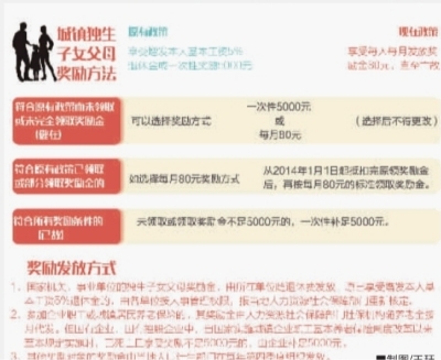 8月1日,《湖南省人民政府关于印发〈湖南省完善城镇独生子女父母奖励办法若干规定〉的通知》正式出台。省卫生与计生委8月18日对新政进行解读,新政策将原有的奖励金额提高到每人每月80元。